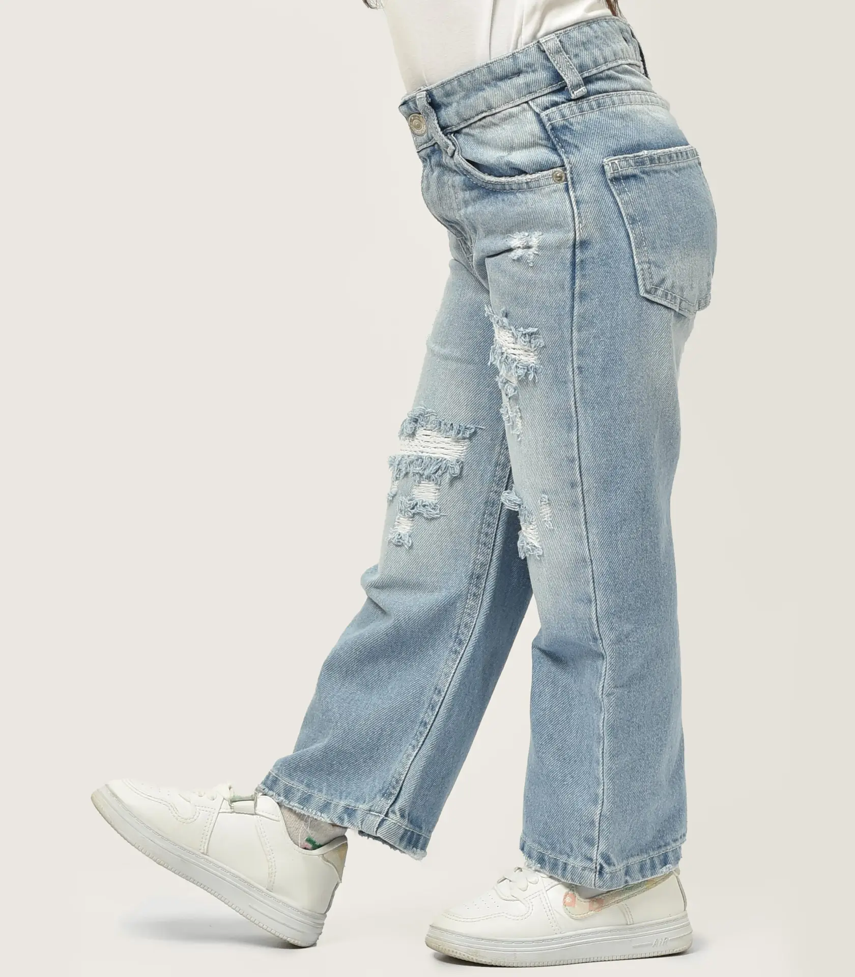 بنطلون بناتي جينز وايد ليج تقطيع