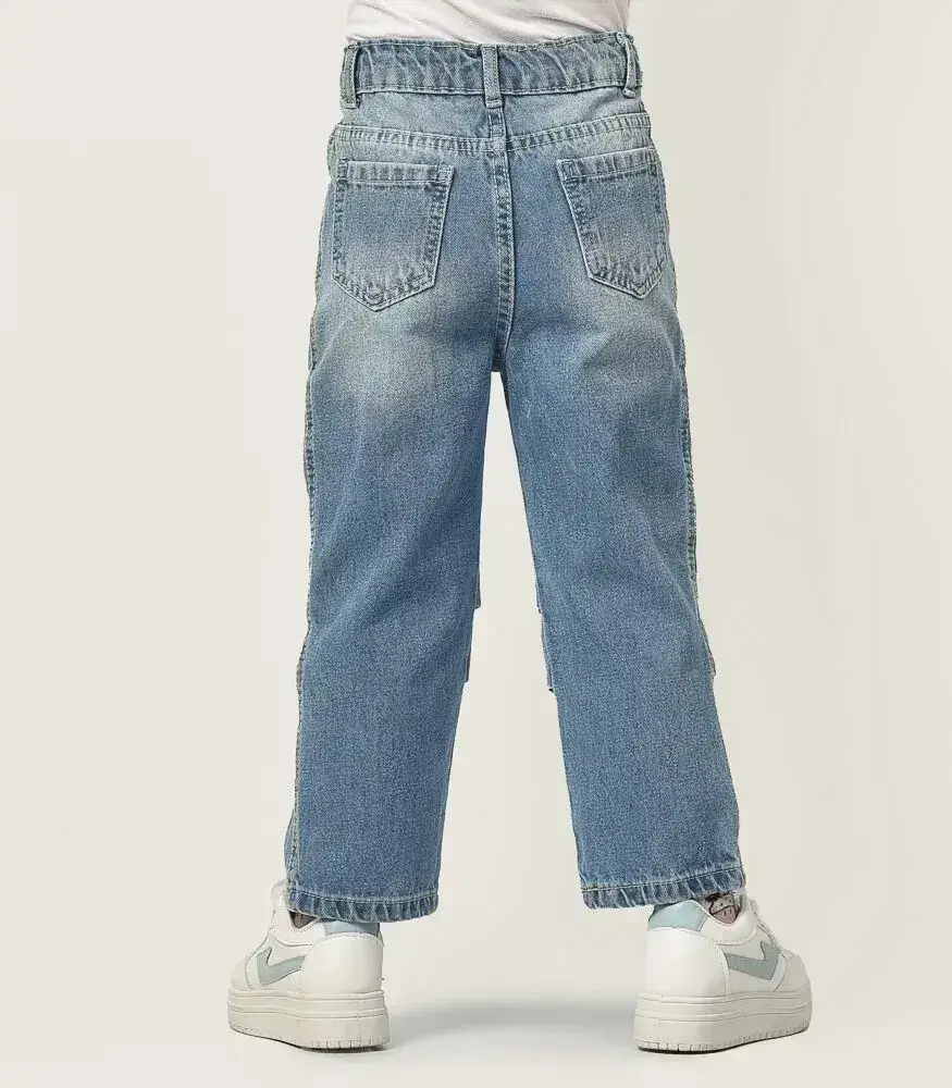 اكتشفي الأناقة مع بنطلون بناتي جينز وايد ليج! تصميم عصري واسع يمنح طفلتك الراحة والمظهر المميز في كل المناسبات. تسوقي الآن لأفضل الخيارات!