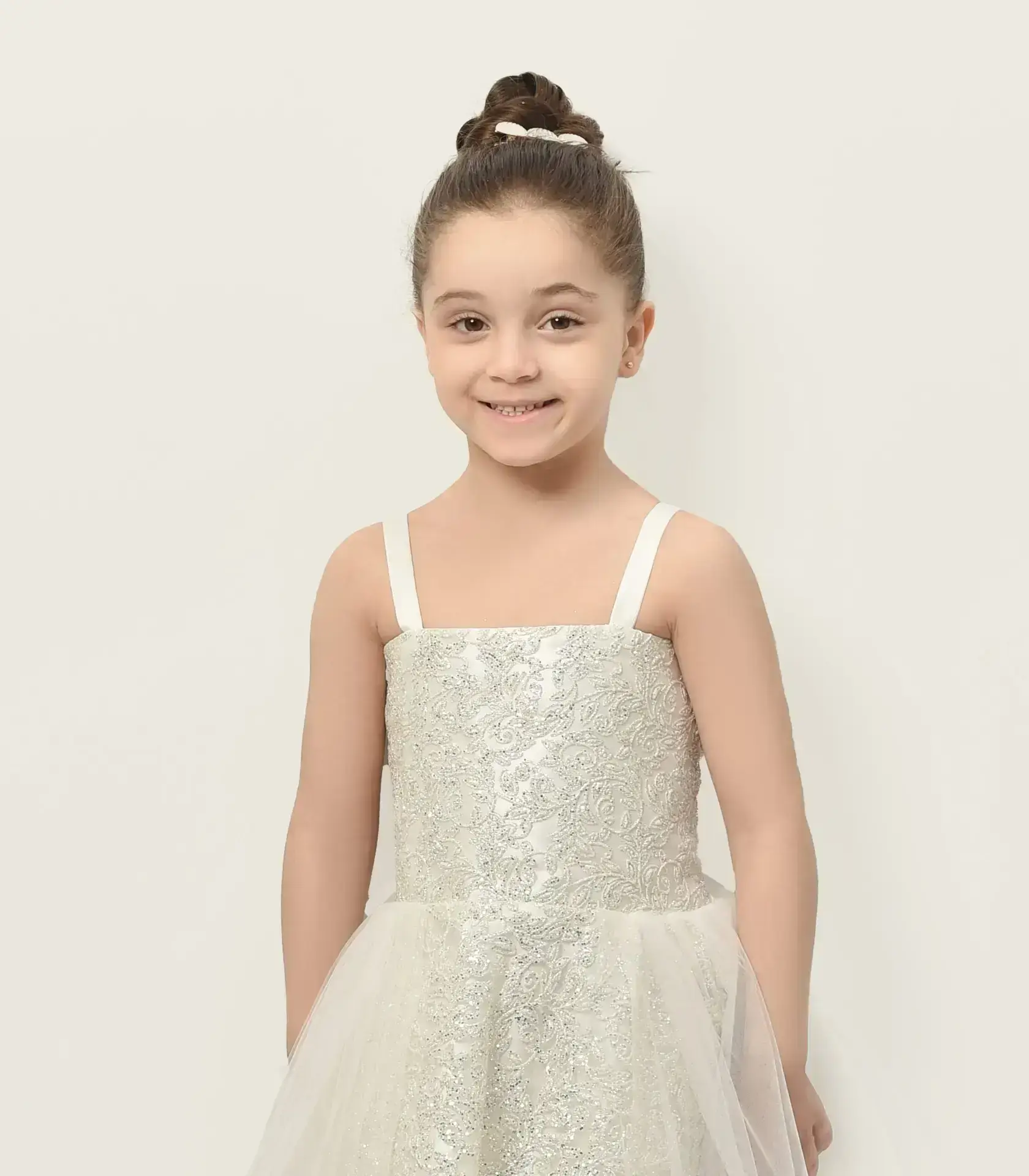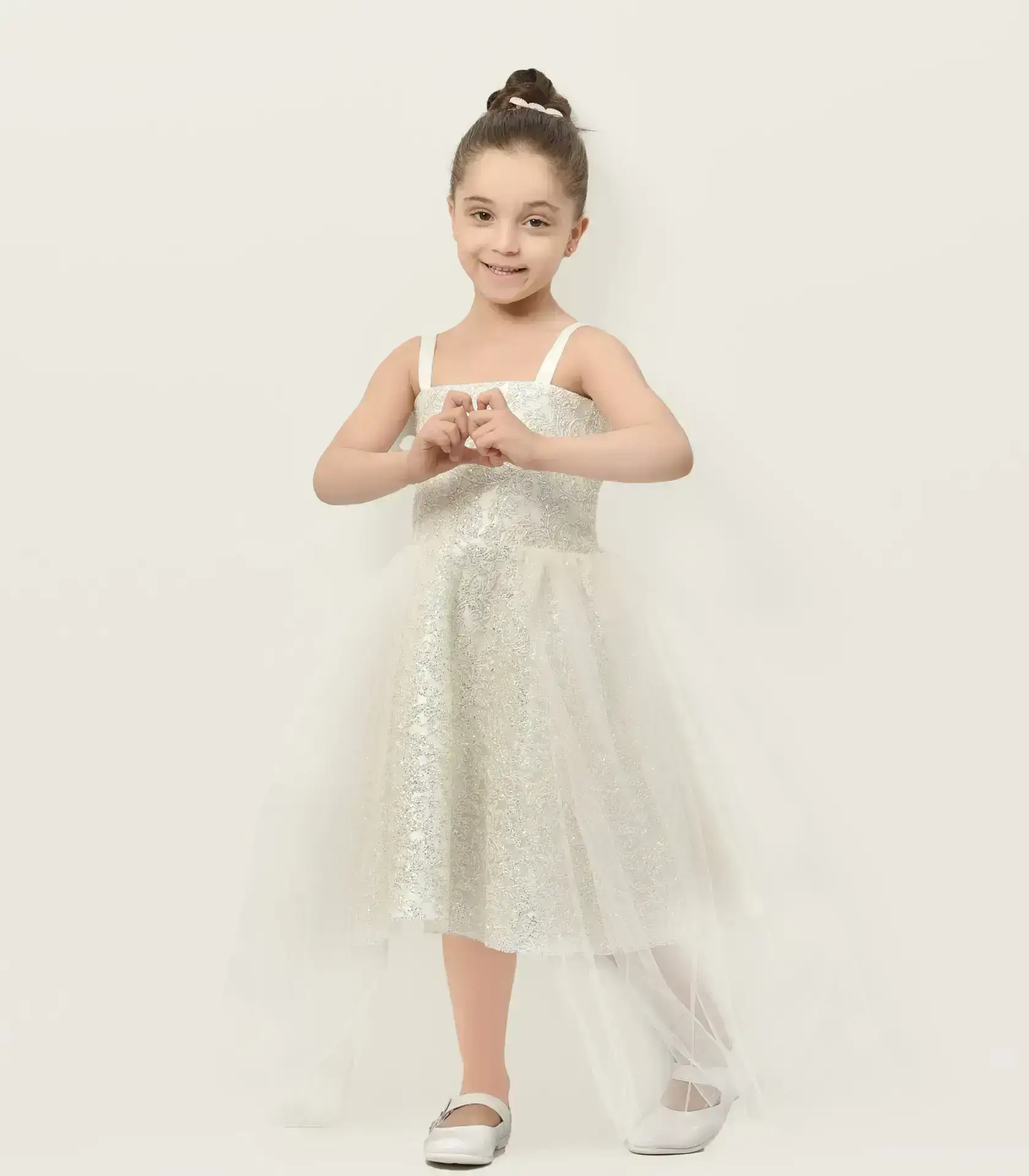 رغم فخامته، يتم تصنيع فستان السواريه البناتي من خامات ناعمة وآمنة على بشرة الأطفال الحساسة مثل التل المبطن والقطن الداخلي.