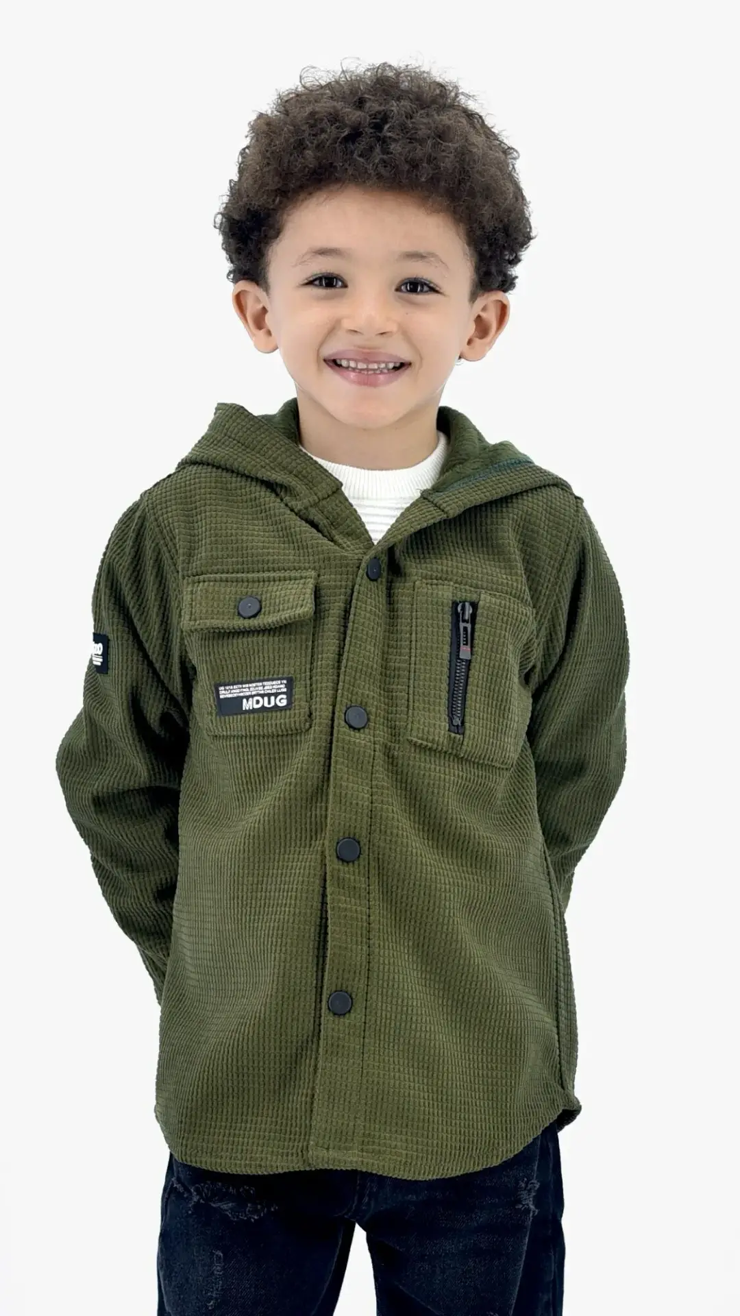قميص أولادي مبطن كابيتشو مبطن زيتي غامق