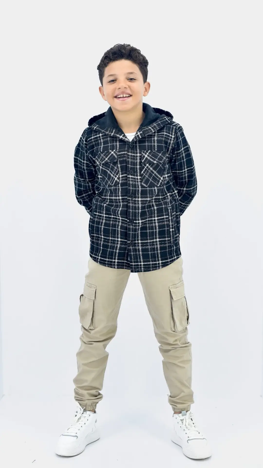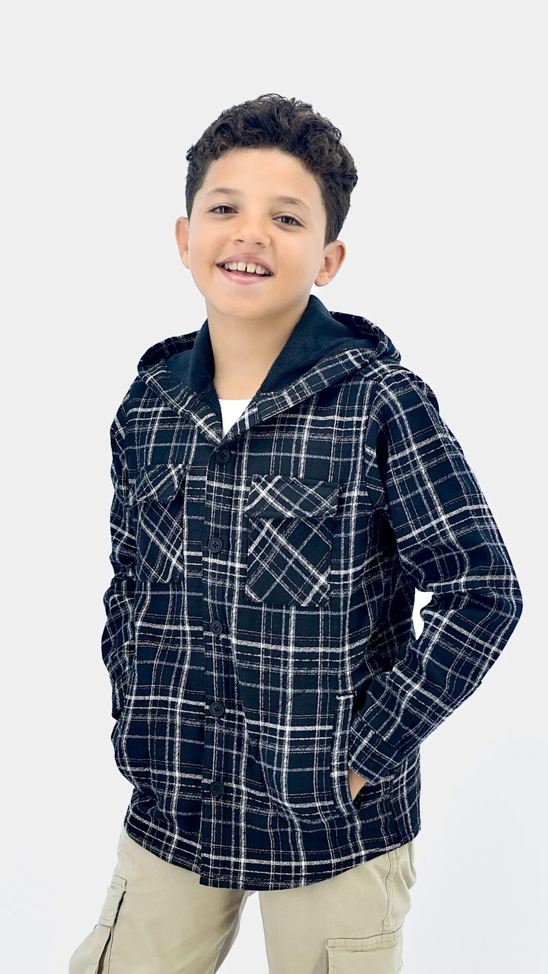 قميص أولادي كاروهات كابيتشو مبطن أسود