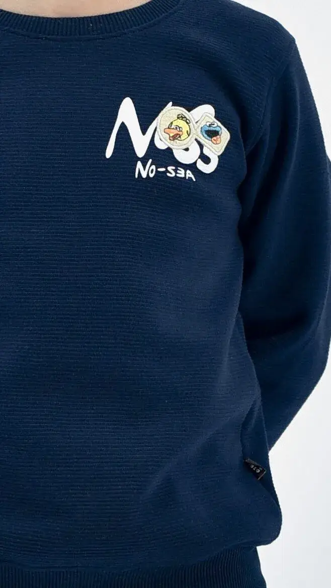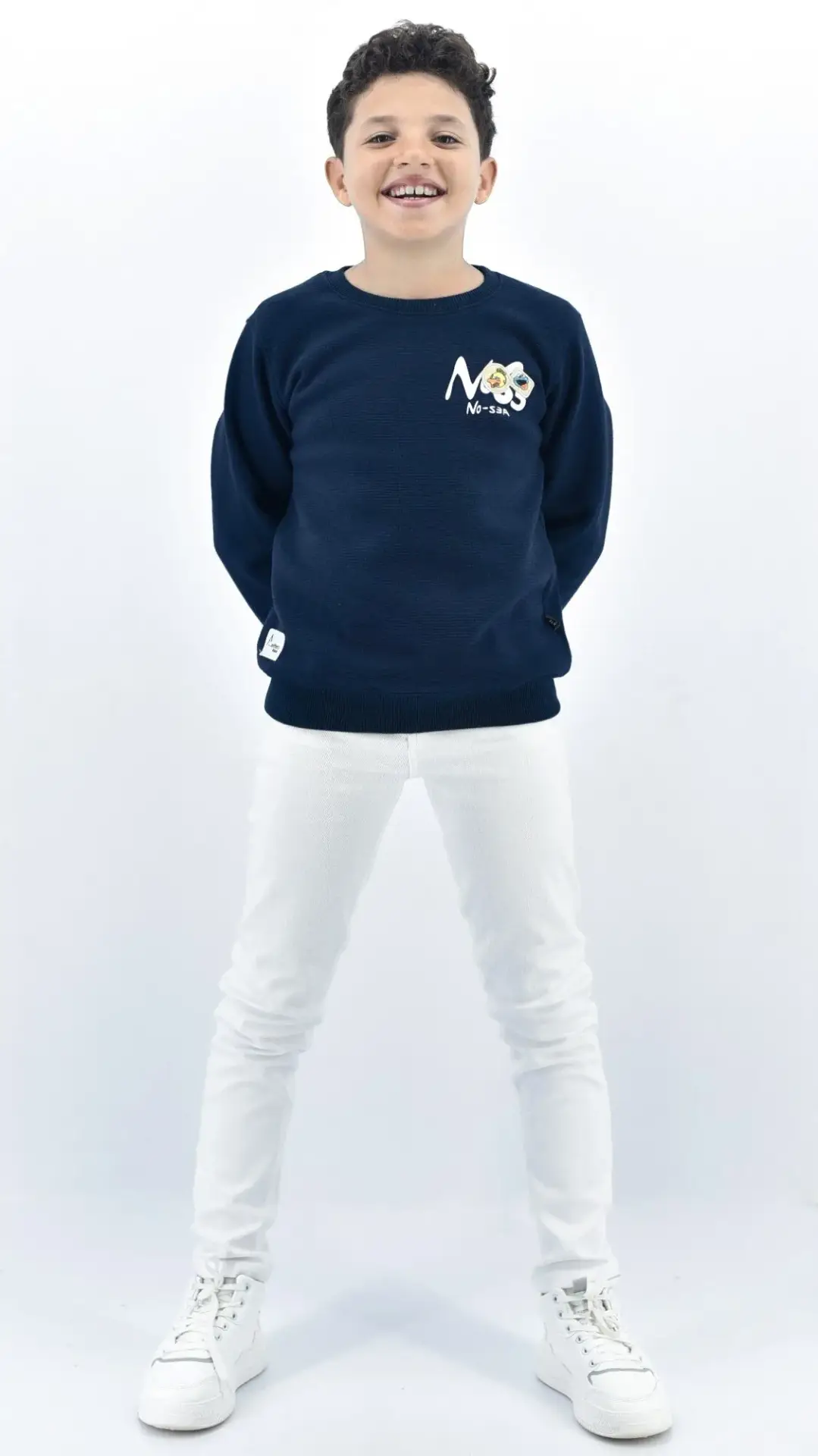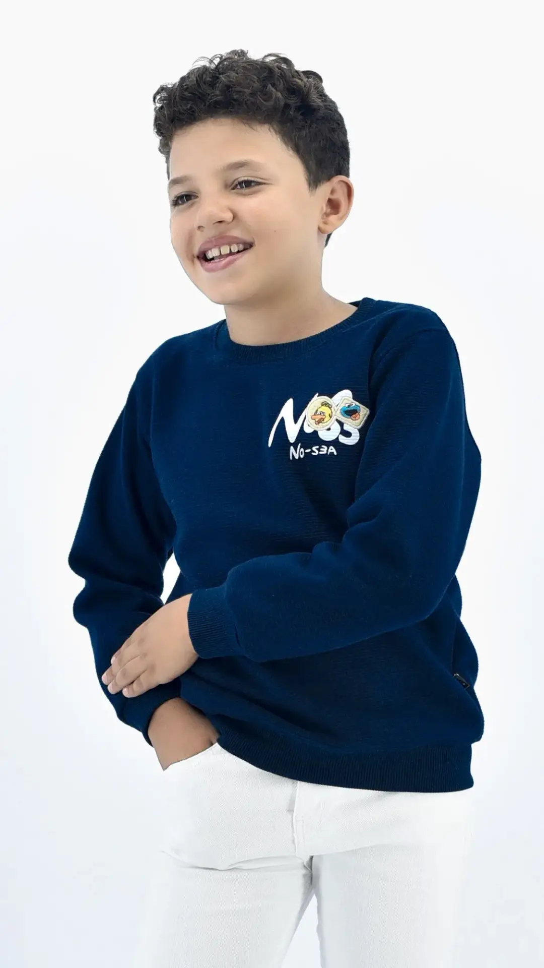 سويت شيرت أولادي روند مطبوع مبطن كحلي