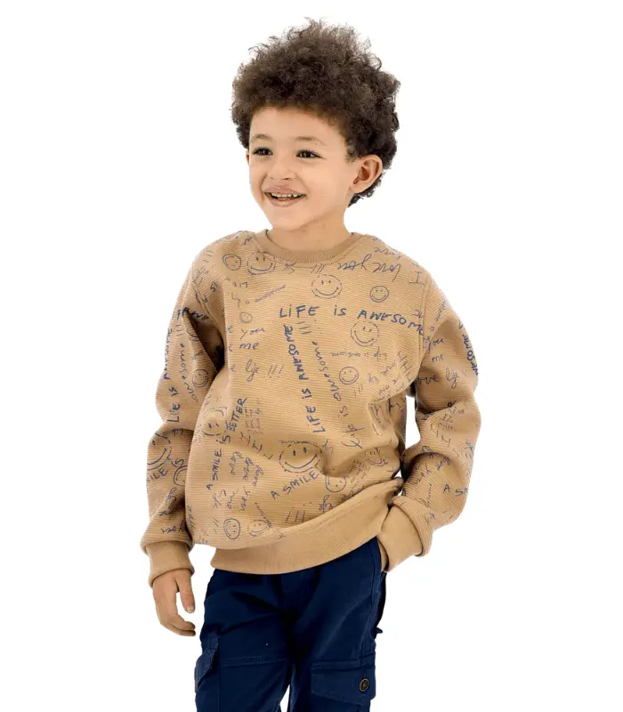 سويت شيرت أولادي روند مطبوع مبطن زيتي