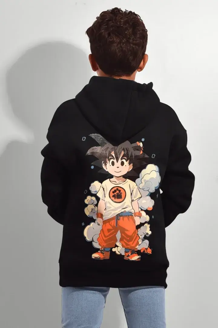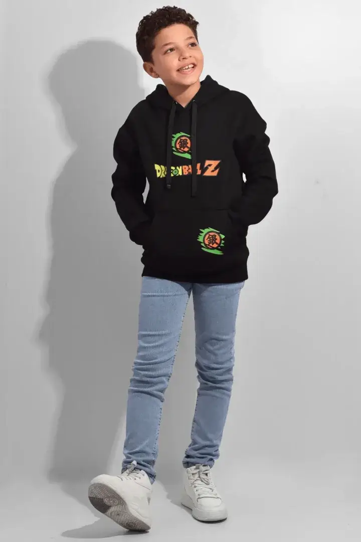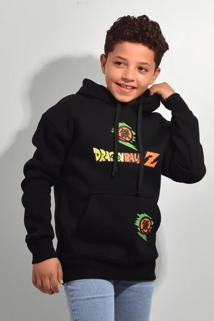سويت شيرت أولادي كابيتشو مطبوع مبطن أسود