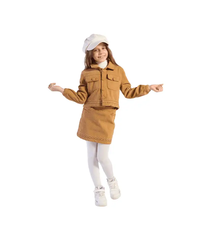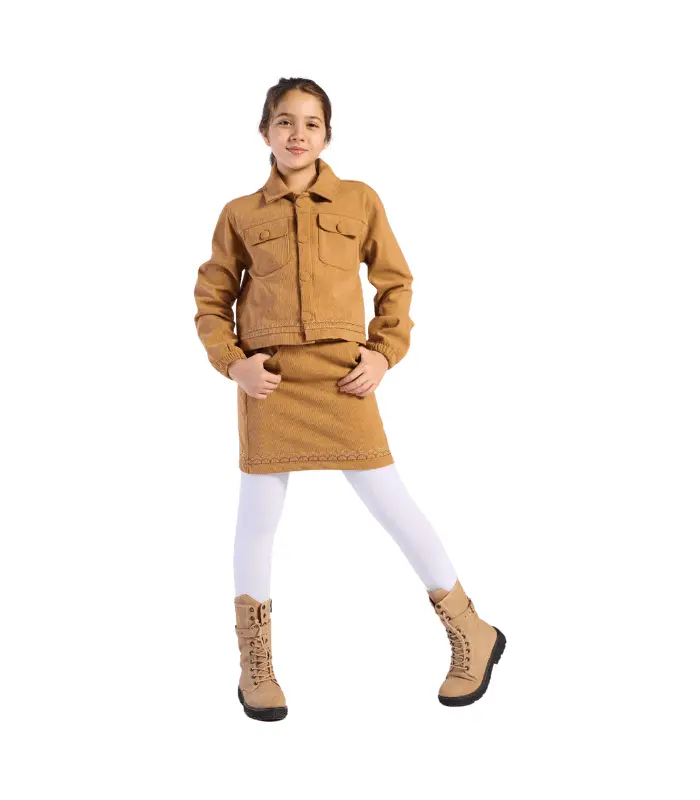 طقم بناتي جاكيت مبطن و جيبة قطيفة و كولون – مريح وأنيق لجميع المناسبات