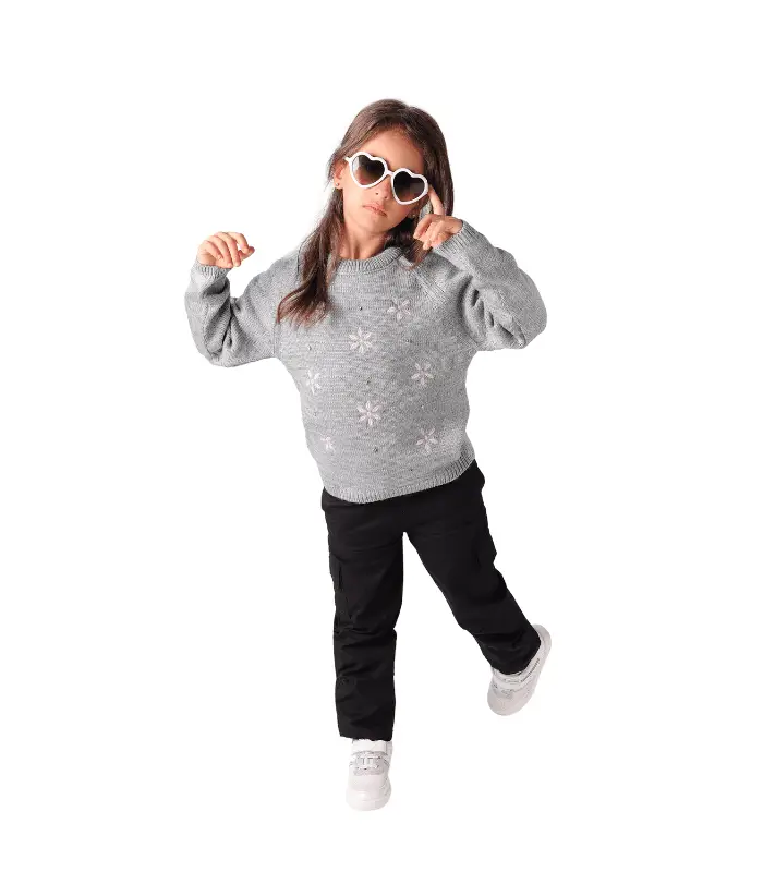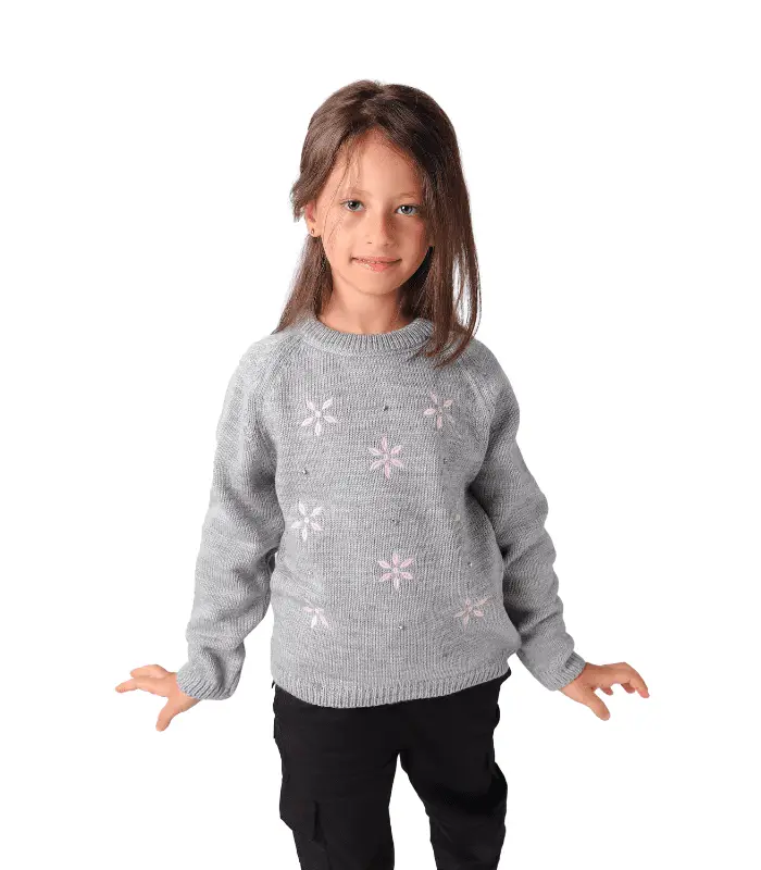 بلوفر بناتي صوف مطبوع فضي