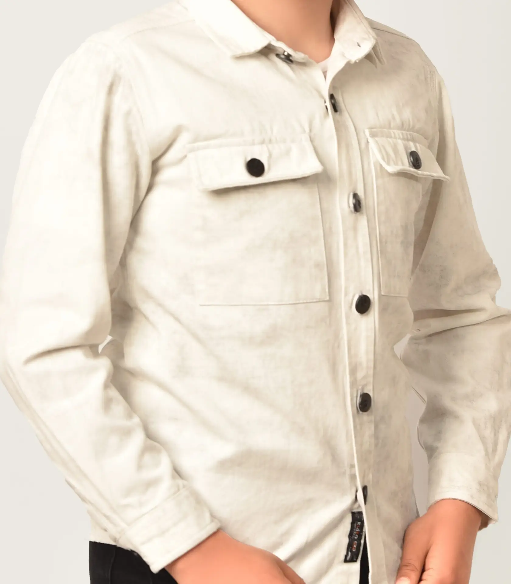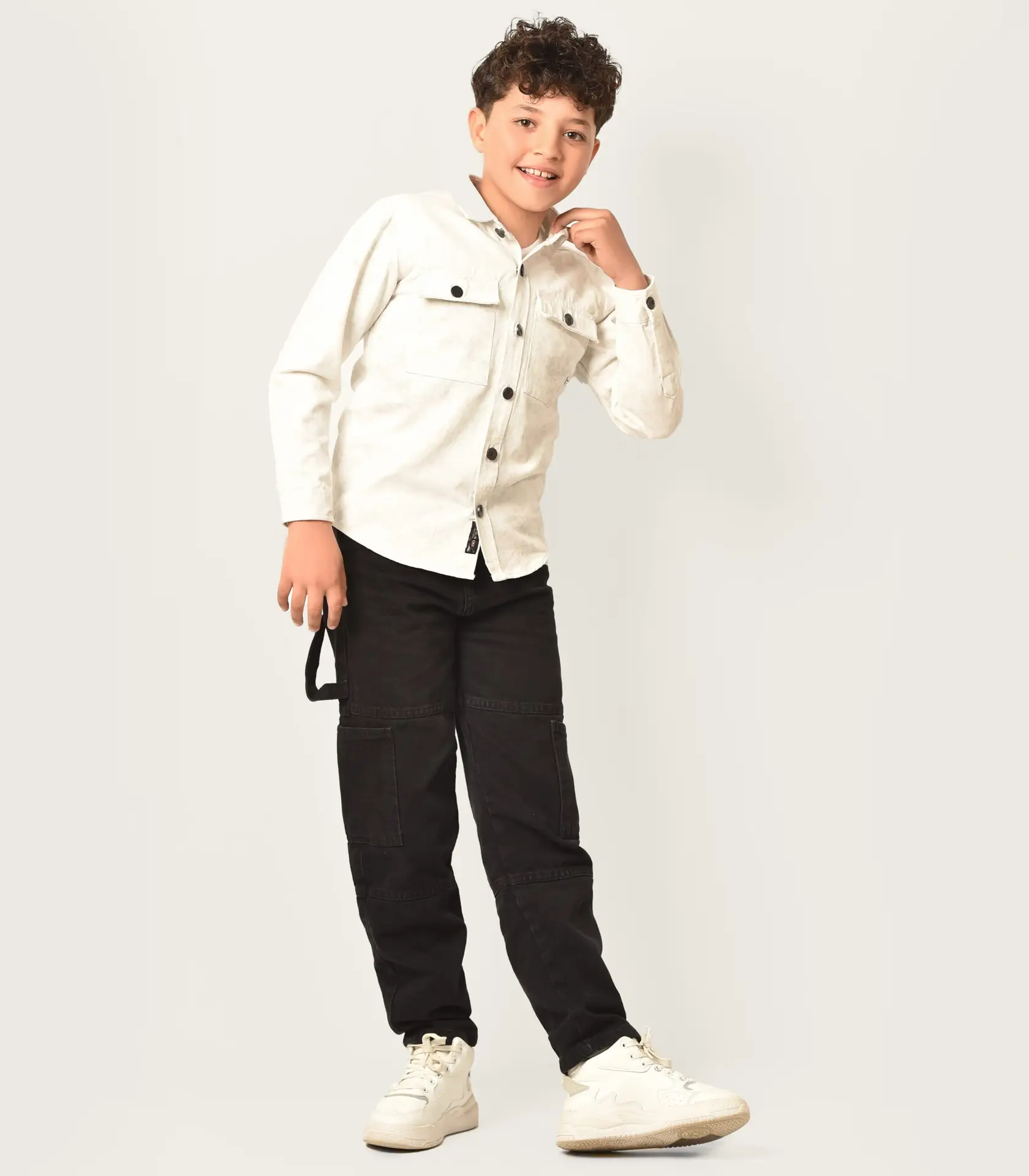 قميص أولادي كم جبردين ابيض