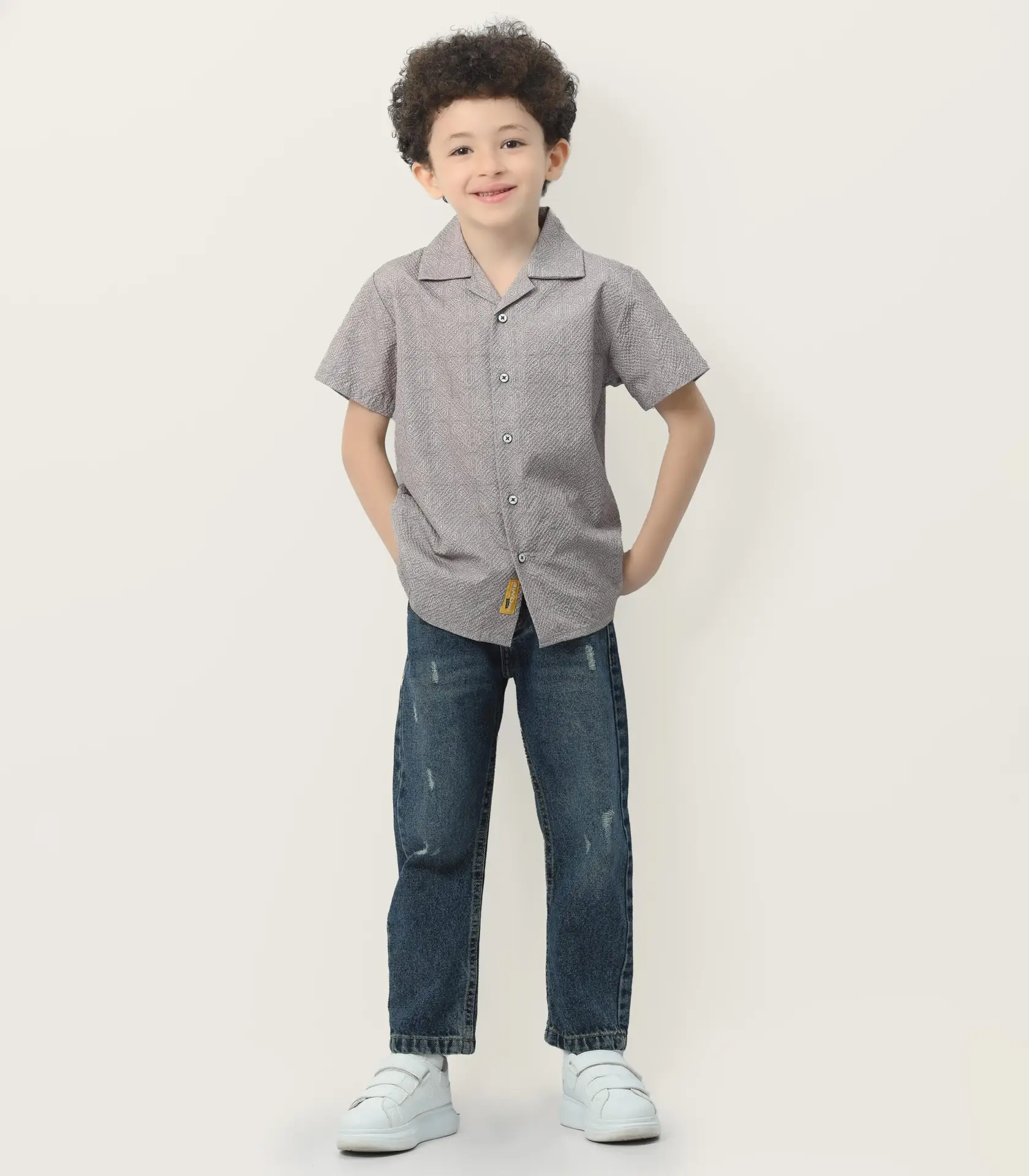 قميص أولادي أنيق وعصري، مصنوع من خامة قطنية ناعمة بنسبة 100%، بتصميم يجمع بين العملية والموضة.