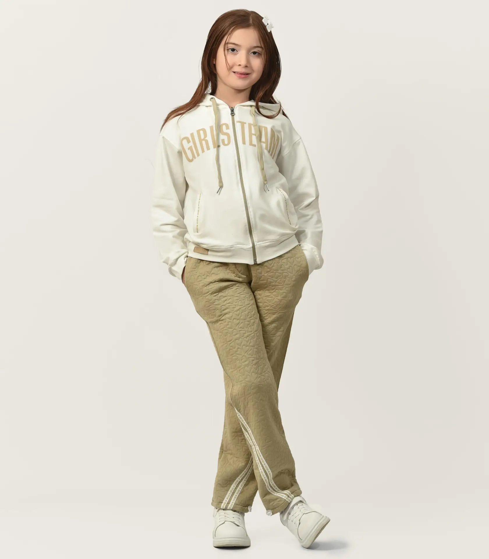 بيجامه بناتي قطن ميلتون مطبوع كابيتشو ابيض