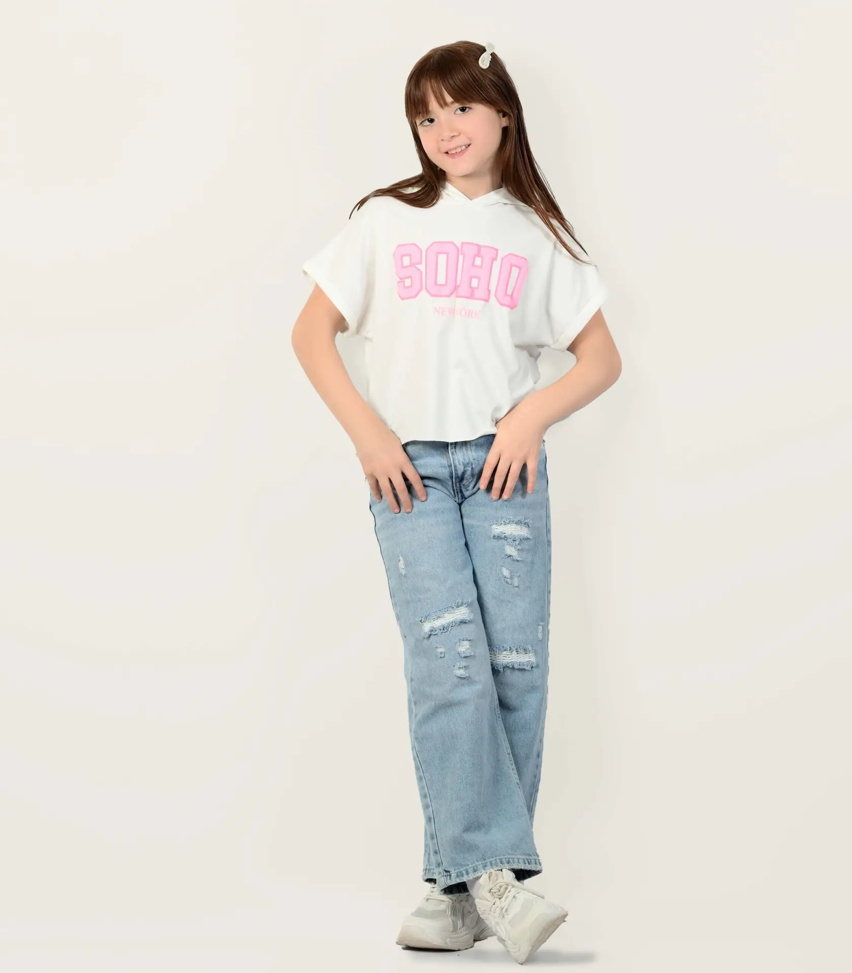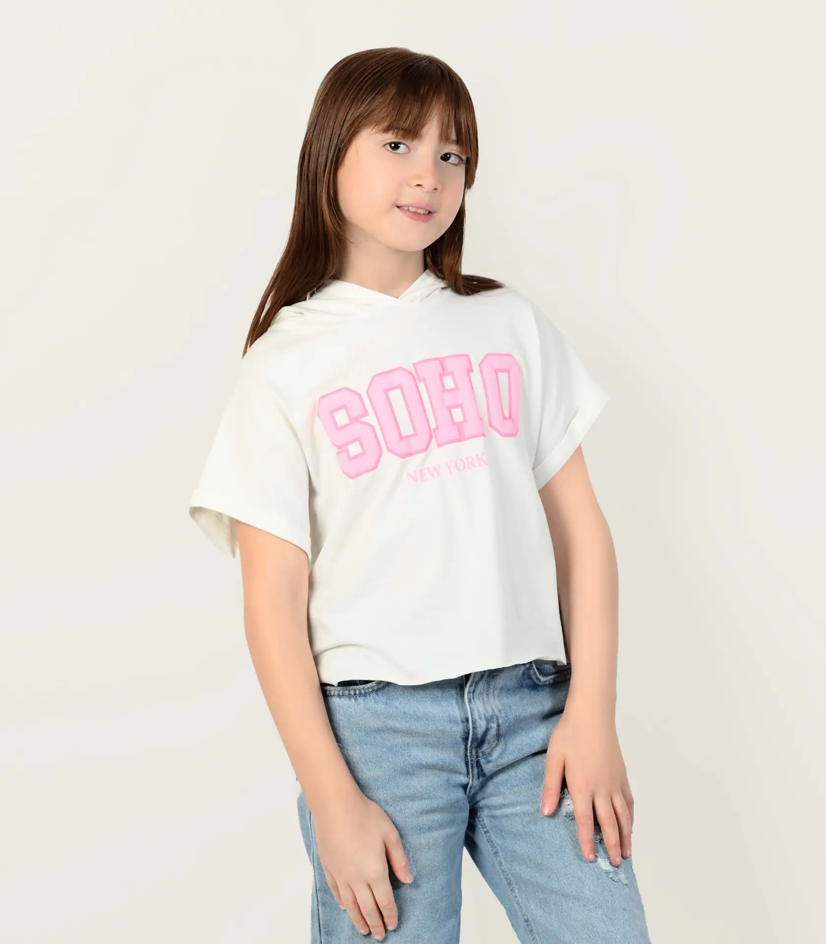 تيشرت بناتي عصري بخامة قطنية ناعمة وتصميم جذاب يناسب الخروج والأنشطة اليومية. متوفر بألوان متنوعة ومقاسات متعددة تناسب جميع الأعمار.