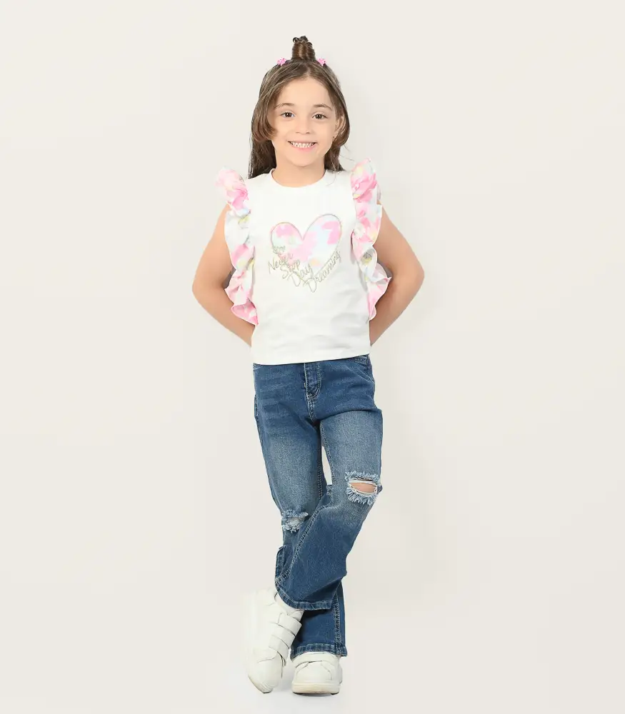 تيشرت مزين بالترتر يضيف لمسة لامعة محببة للبنات الصغيرات